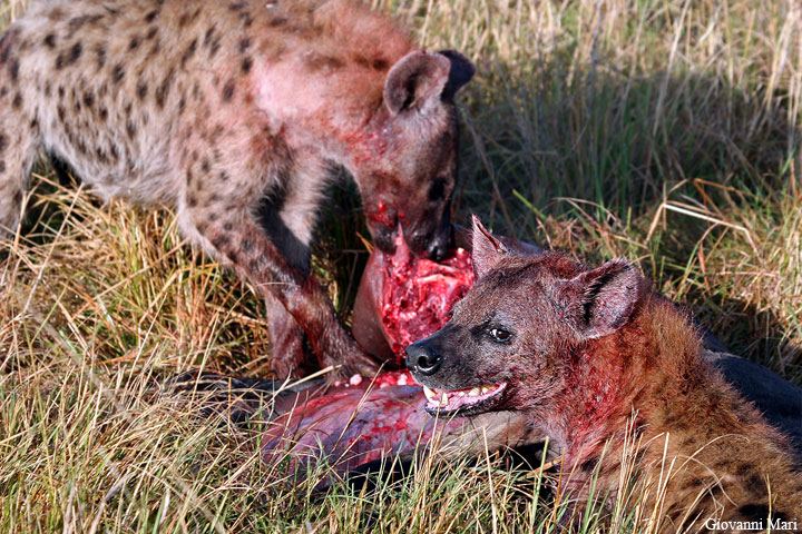 Hyenas on Wildbeast, Masai Mara Reserve
