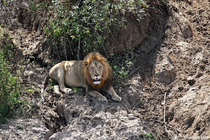 Lion waiting Wildbeasts, Masai Mara Reserve