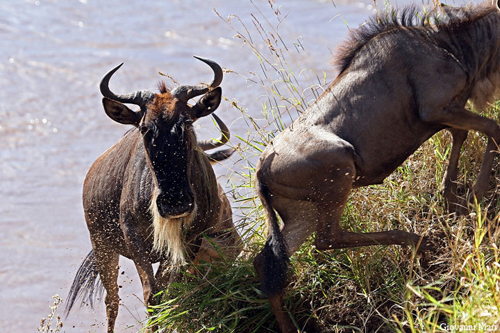 Wildbeasts crossing Mara River, Masai Mara Reserve